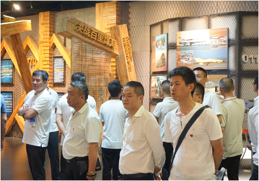 下午贵州永兴党支部和六盘水友升党支部全体党员一同参观了贵州三线建设博物馆。贵州三线建设博物馆是国内第一家以“三线文化”为主题的博物馆,在博物馆讲解员的带领下,全体党员逐一参观了各个展厅,一件件锈迹斑斑的器具,一张张历史照片,充满年代感的“三线建设”见证物,仿佛把大家拉回到那段“激情燃烧的岁月”,让大家得以有机会重温三线建设历史,感知三线建设精神。最后在贵州永兴党支部书记杨兴林同志带领下党员干部面对鲜红的党旗举起右拳重温入党誓词,“我志愿加入中国共产党,拥护党的纲领,遵守党的章程,履行党员义务……”,在铿锵有力的入党誓词中结束了本次交流及学习之旅。