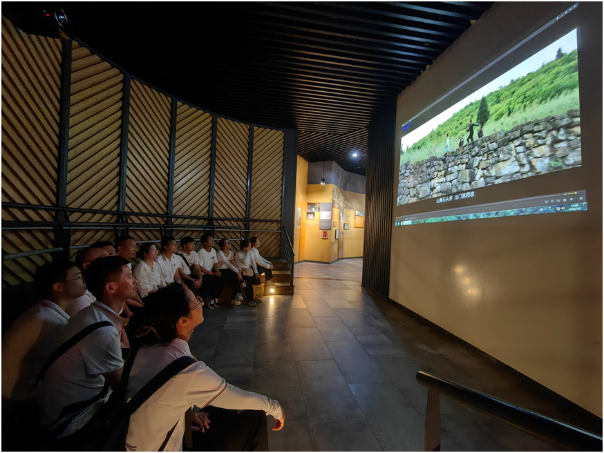 下午来到大发渠陈列馆,在讲解员的引导下,大家认真观看一张张珍贵的照片、一件件陈旧的工具、一段段感人的视频,聆听黄大发老支书为改变家乡缺水困境,历时36年带领村民在悬崖峭壁上硬生生凿出一条“生命渠”“致富渠”的故事。每一件展品背后都凝聚着当年修渠的艰辛与不易,生动展现了黄大发老支书“当代愚公”的坚韧品质和共产党员一心为民的初心使命,党员们深受触动。